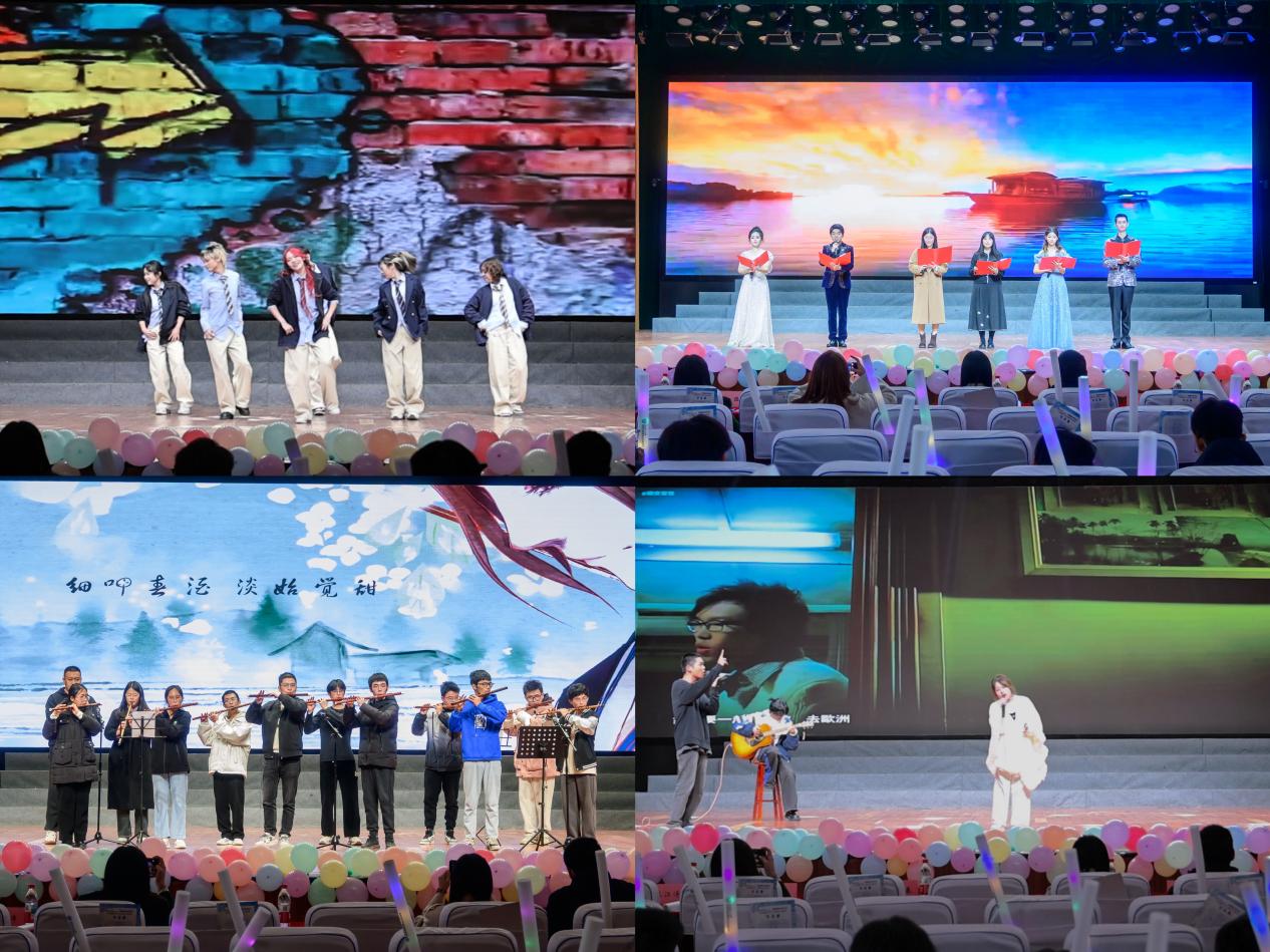 由爱弥修乐队演唱的歌曲《没有理想的人不伤心》直击内心最真实的轰鸣与渴望;张子杰等同学合作的器乐表演《打上花火》韵味悠长;徐欣睿同学带来的说唱《夕阳落》,用动人嗓音传递动感旋律背后夕阳西下的深沉情愫;由刘思源同学带来的歌曲《一荤一素》则是转向生活里最温暖的日常,展现了母亲藏在烟火气里的温柔牵挂。
