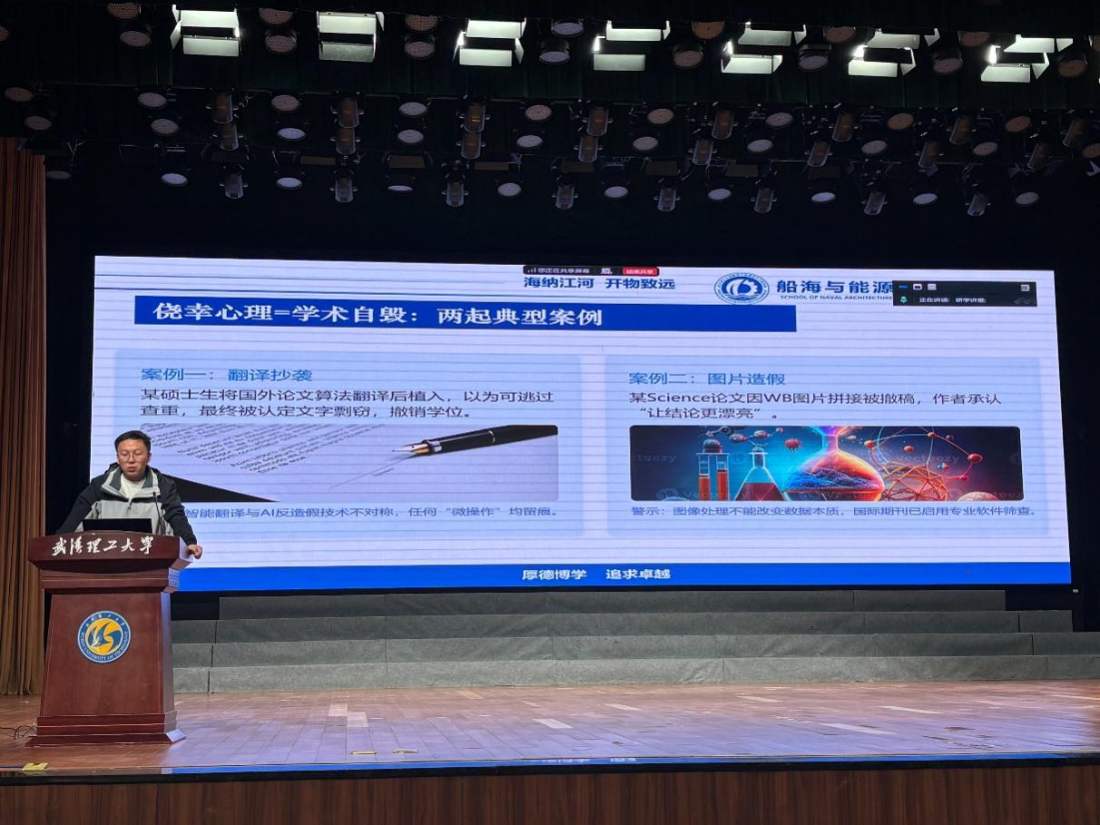10月23日上午,张孝恒以学术诚信为主题主讲。他强调学术诚信“求真”“守信”之核心,结合国家2019年发布的学术不端行业标准,拆解学术不端“6+2”典型形态,从剽窃、伪造、篡改等常见行为到违背研究伦理、委托代写代投等情形,逐一详细讲解,明确学术行为红线。在案例镜鉴中,张孝恒列举了国内外诸多实例,如硕士生翻译国外论文算法被撤学位、某博士生论文抄袭致学位撤销及导师受罚,以及国际上某Science论文图片造假撤稿等事件,剖析学术不端对个人、团队及国家的危害。法规解读部分,他梳理《科学技术进步法》《教育部学位论文作假行为处理办法》及《研究生手册》相关条款,构建“法律-行政-校园”三级治理认知,让同学们清晰知晓学术不端将面临的严重后果。在防范策略与写作技巧指导中,他从研究全周期给出建议,涵盖选题申请、数据收集、交流合作、写作发表等各个环节,推荐合规查重与引用管理工具,提醒警惕盗版查重。