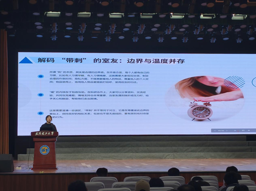 10月17日,潘玟竹聚焦研究生健康生活与和谐寝室建设。她指出研究生阶段科研任务重、压力大,易出现熬夜、烟酒依赖等问题,寝室作为“第二实验室”,其和谐程度对学习科研状态与日常生活质量影响重大。她深入剖析烟草与酒精对研究生的多重危害,提出研究生禁酒“三不原则”,分享聚餐拒酒技巧。在寝室相处方面,她解读寝室相处核心逻辑,指出室友间需明确规则、包容互助,分享对事不对人、及时沟通等沟通法则,倡导通过组队运动、定期学术交流、定制寝室座右铭、设立健康公约墙等方式打造寝室文化符号,共建正向寝室生态。