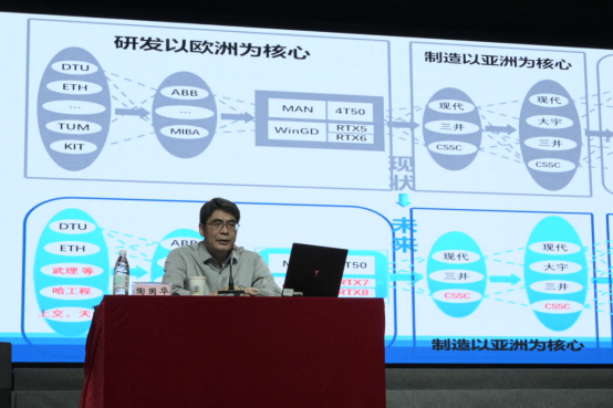 10月25日,陶国华校友以“对船用低速机排放的认识和船舶绿色减碳转型背景下其未来技术和产品发展的思考”为题作报告,详细介绍了船用低速机的进展与现状,深度分析了船用低速机低碳零碳技术及产品的发展趋势,并明确提出了船舶动力行业低成本绿色发展的路径。陶国华强调,“船舶动力是船舶工业的核心所在,其进步对于推动船舶工业的绿色、高质量发展至关重要。”