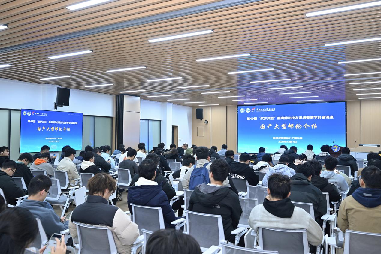 参与讲座的还有校务委员会副主任、船海学科首席教授刘祖源,学院副院长王冲,船舶邮轮中心主任裴志勇,以及学院师生代表。