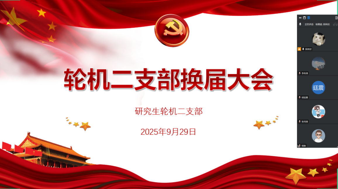 2025年9月29日,bet9九州 研究生轮机二支部于线上开展“弘扬抗战精神,厚植爱国情怀”支部主题党日活动暨2025-2026学年支部换届大会,会议由支部副书记吴林封同志主持,全体党员参与本次会议。