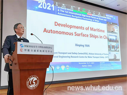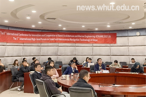 (1) From November 16 to 17, 2021, the 5th International Conference on Naval Architecture and Marine Engineering (ICNAME2021) co-hosted by Harbin Engineering University, Wuhan University of Technology, and Russian University of Transport, together with the First High-Level Forum on International Intelligent and Autonomous Navigation Technology for Ships, was held in a combination of online and offline formats. The conference aimed to strengthen interconnection and resource sharing among universities in the field of international intelligent ships, promote domestic and foreign exchanges on intelligent ship technologies, and advance the development of intelligent ships and autonomous navigation ships. Professor Zhang Zunhua from the School of Naval Architecture, Ocean and Energy Power Engineering delivered a plenary report entitled "Progress and Challenges in High Efficiency and Clean Combustion of Marine Engines Fueled with Ammonia", and Vice Dean Cheng Xide served as the host of the Green Ship parallel session.