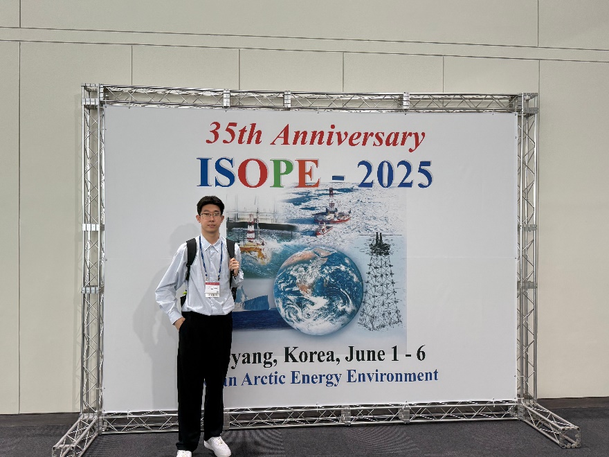 The conference was held at KINTEX International Convention Center in Goyang, South Korea, with the agenda running from June 1 to June 6, 2025. It included 147 technical sessions and workshops with peer-reviewed papers and plenary sessions, as well as keynote speeches from more than 40 countries, including ISOPE professional seminars as part of ISOPE-2025. On June 1, Zhang Hanwen, a doctoral student from the School of Naval Architecture, Ocean and Energy Power Engineering, went to Goyang, South Korea to attend ISOPE-2025.