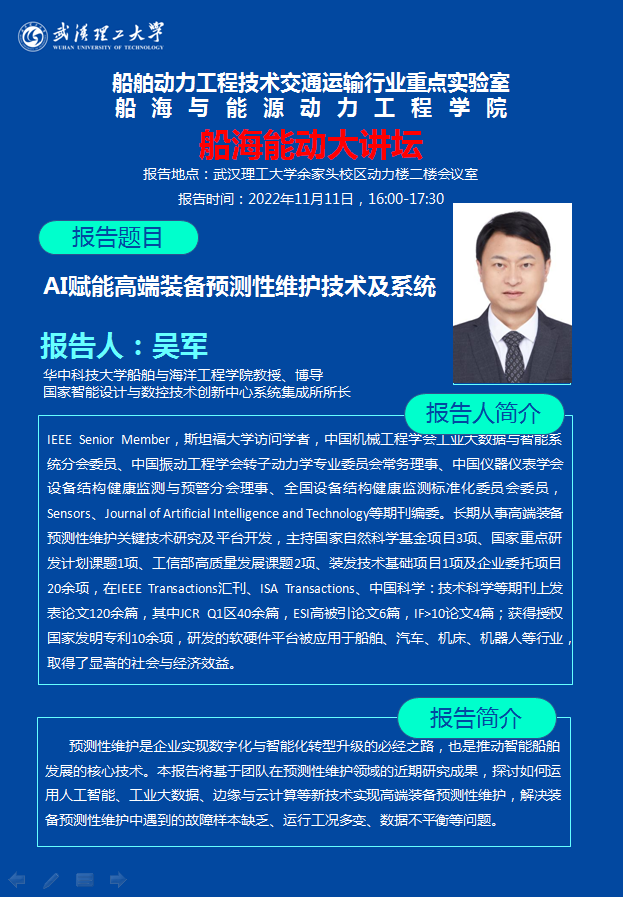 【船海能动大讲坛】AI赋能高端装备预测性维护技术及系统