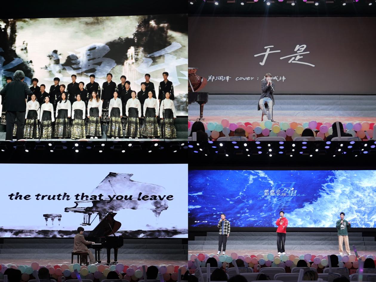 由爱弥修乐队演唱的歌曲《没有理想的人不伤心》直击内心最真实的轰鸣与渴望;张子杰等同学合作的器乐表演《打上花火》韵味悠长;徐欣睿同学带来的说唱《夕阳落》,用动人嗓音传递动感旋律背后夕阳西下的深沉情愫;由刘思源同学带来的歌曲《一荤一素》则是转向生活里最温暖的日常,展现了母亲藏在烟火气里的温柔牵挂。