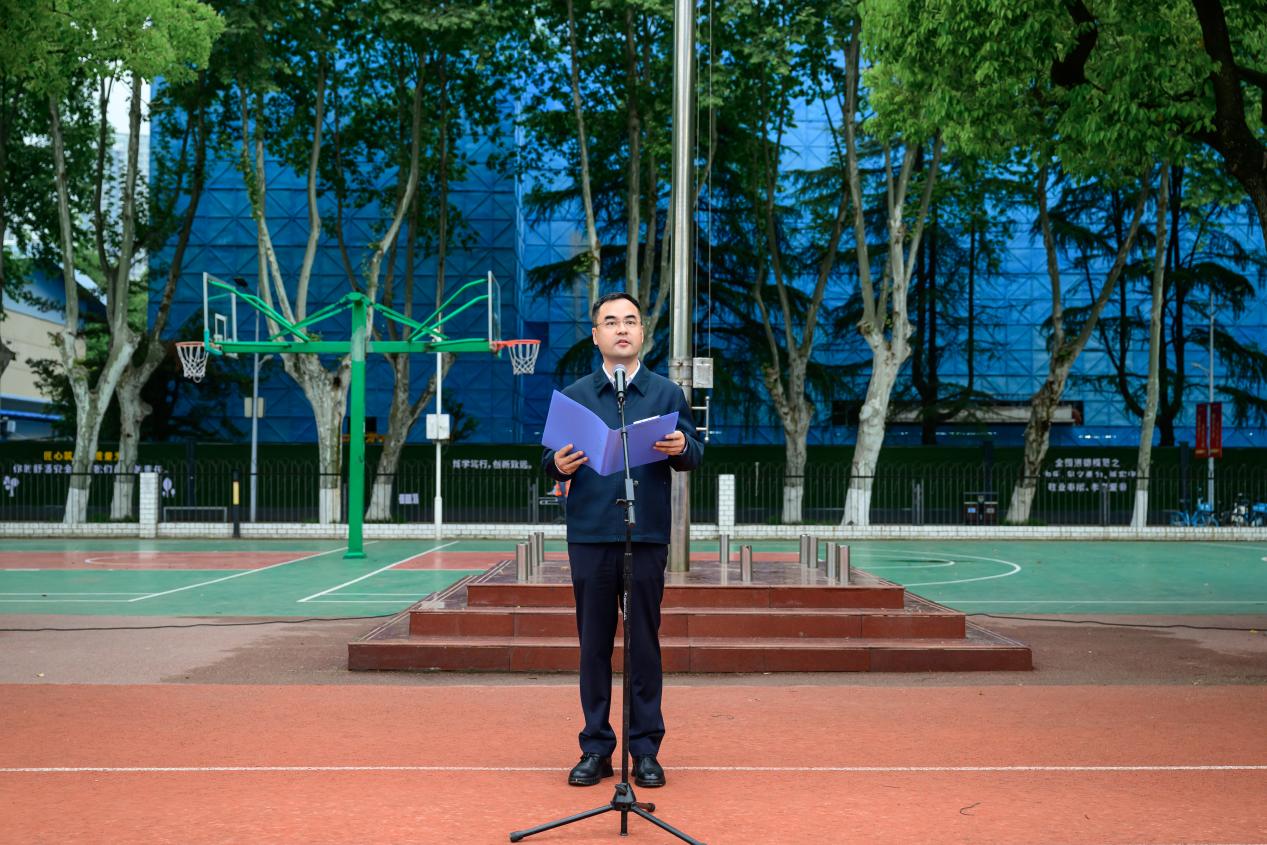 胡剑在国旗下讲话中指出,国家安全是国家发展、民族复兴的根基,要坚定不移贯彻总体国家安全观,把维护国家安全贯穿办学治校、人才培养各方面全过程。他向全体师生提出三点希望:一是深学笃行铸忠诚,以素养提升筑牢思想根基,淬炼维护国家安全的政治自觉;二是知行合一守底线,以安全意识教育为抓手,织密校园安全防护网络;三是示范引领树标杆,以爱校荣校赤诚践行报国之志,勇担国家安全时代使命。他寄语全体师生践行“厚德博学,追求卓越”校训,自觉履行维护国家安全的公民责任,以校园之稳服务国家安全大局。