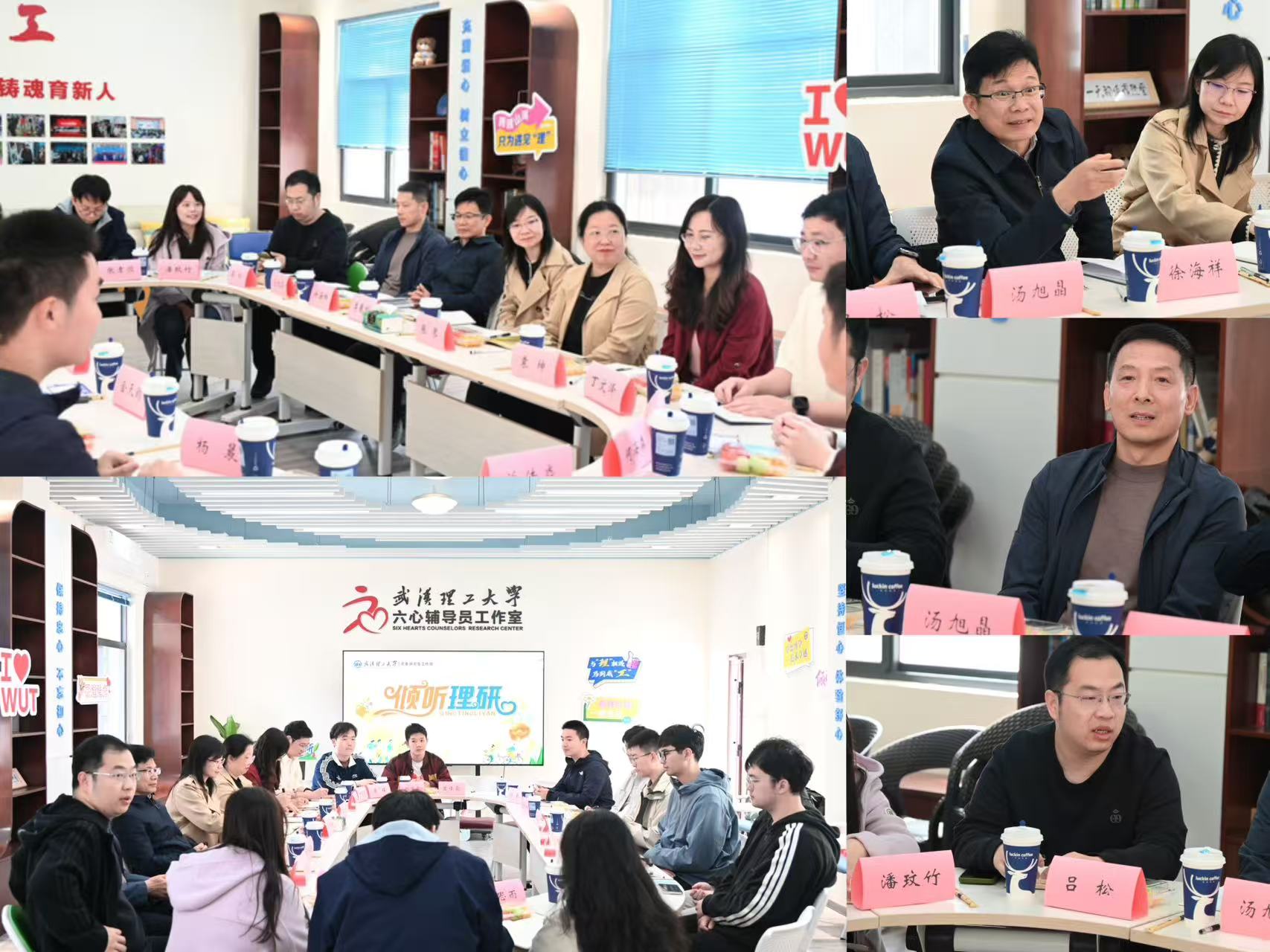 4月24日上午,由党委研究生工作部主办、学院承办的“倾听理研”导学活动在余家头校区“六心”行业思政辅导员工作室温情举行。本次活动以“研途筑梦・规划先行”为主题,聚焦研究生在论文攻坚、就业升学、情绪调节等方面的成长困惑,搭建起导学相长、温暖同行的育人桥梁。本次活动吸引了来自3个年级的十余名研究生参与,校党委研究生工作部张琴老师、bet9九州 党委副书记李春梅、研究生导师徐海祥教授、汤旭晶副教授、吕松教授、研工办、学工办相关老师参加活动。